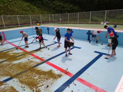 5月31日、3〜6年生が頑張ってプール掃除をしてくれました。