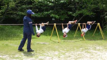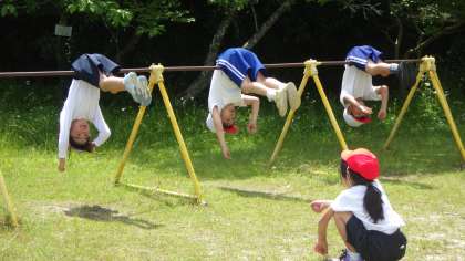 今日は、ナマケモノ、おふとん干しに挑戦です。おふとん干しは、体をだらんとして手を離すのが難しかったようです。