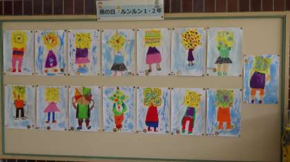 昇降口の1、2年生の傘の絵を見ると楽しくなります。