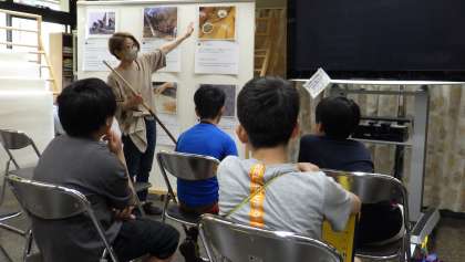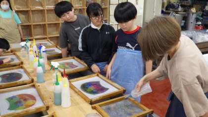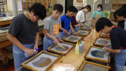 和紙作りについてお話を聞いた後、うちわ作りに挑戦しました。