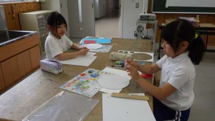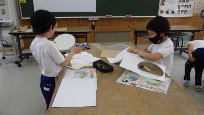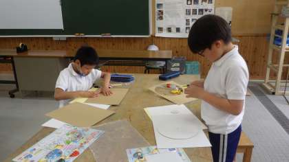 場面が変わる立体を作ります。頭の中で構想を練りながら、舞台作りです。