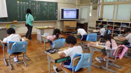 「名前をみてちょうだい」の単元で、場面分けの学習です。教科書の音読を聞きながら、時、場所、人物に注目して場面の切れ目を考えていました。