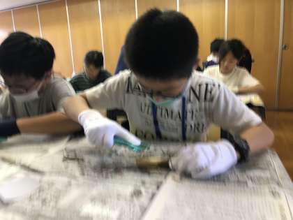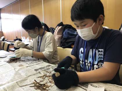 午前中はウォークラリーを予定していましたが、天候が崩れるのでメタルスプーン作りに取り組みました。