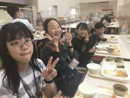夕食の時間です。モリモリ食べてキャンプファイヤーに備えます。