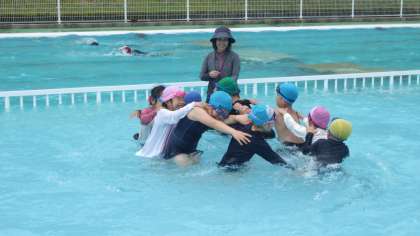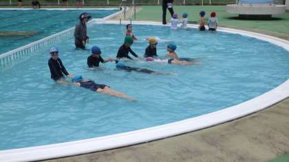 曇り空で雨が心配されましたが、子ども達の心がけが良かったのでしょう、プール学習ができました。