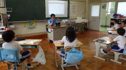 国語では「矛盾」「推敲」などの故事成語についての学習です。先生と子どもたちが、話し合いながらその意味を確認していく過程がとてもよかったです。