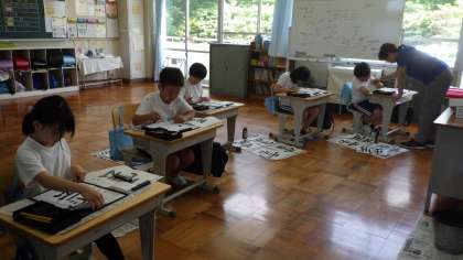 書写では「雲」の清書です。最後の名前まで慎重に取り組んでいました。