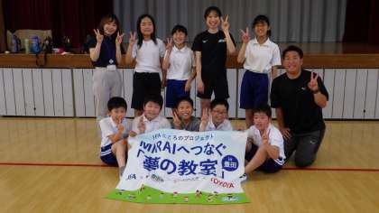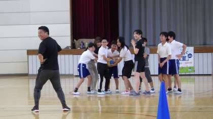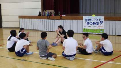 5年生と一緒に体を動かした後、夢を持つことや夢に向かって努力することの大切さについて、子どもたちに伝えてくださいました。