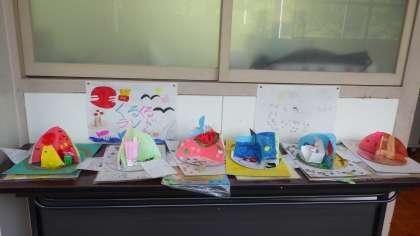 図工で作った作品が教室の廊下に展示してあります。