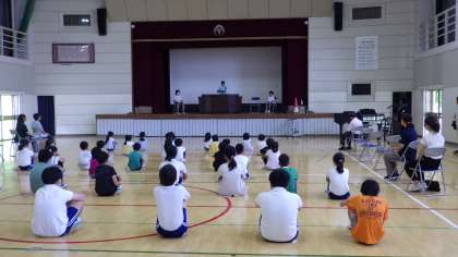 今日は、夏休み前集会を行いました。2・4・6年の代表が、今日までがんばってきたこと、これからがんばりたいことについて話しました。