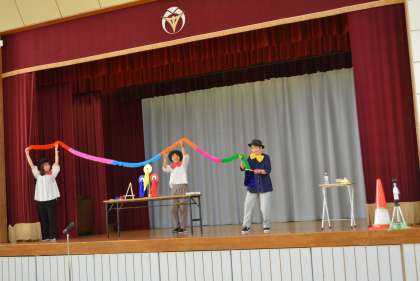 校長先生のお話の後、先生のマジックショーがありました。楽しいひと時でした。