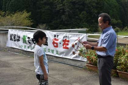最優秀作品を横断幕にして校門横に掲げ、交通安全の啓発に役立てます。
