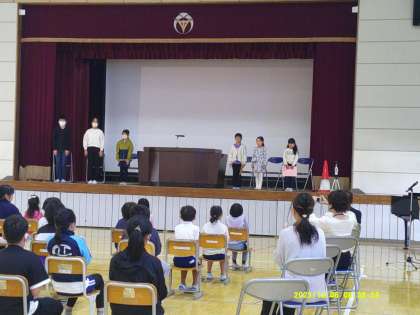 10月6日、前期終業式がありました。各学年の代表が前期を振り返り、発表をしました。どの子もとてもしっかりした発表ができました。