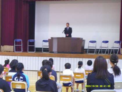 校長先生から「中部小の常識」の「あいさつ」についてのお話がありました。聞く態度も立派でした。