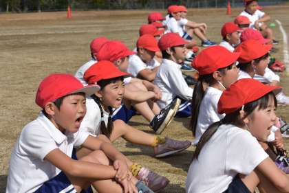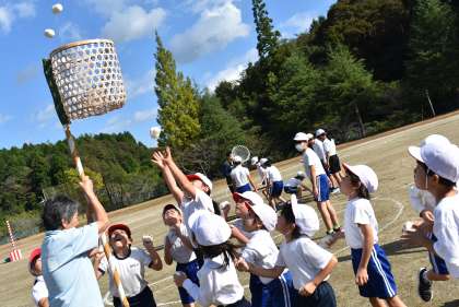 10月12日、玉入れの練習です。応援にも力が入りますね。