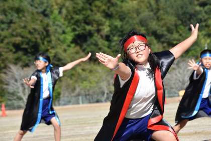 もうすぐ運動会です。10月17日、衣装を着けて本番通りに行いました。入場行進、ソーラン節の様子です。特に高学年は係の仕事もあるので大変です。自分の動きをしっかり頭に入れていました。
