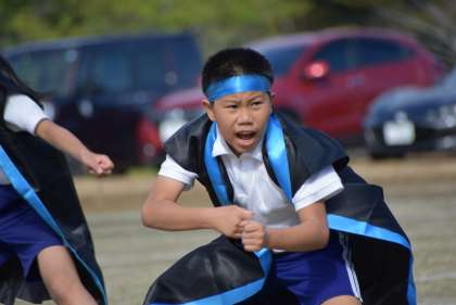 4〜6年の表現種目です。何年も続いている「ソーラン節」です。気合を入れて踊ります。今年の踊りはいかがでしたか?