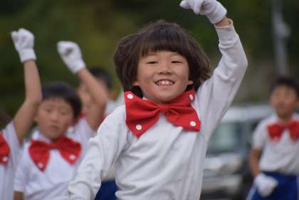 1〜3年の表現種目です。表情豊かに元気いっぱい踊ります。皆この踊りが大好きで、楽しくて仕方がない様子ですね。可愛い写真が撮れたでしょうか?