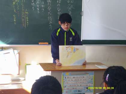 自分が作った物語(紙芝居風に仕立ててあるもの)を順番に発表しました。