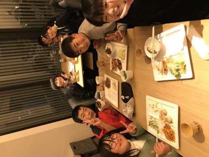 夕食はビュッフェです。みんな食欲旺盛で、たくさん食べました。その後、学校別活動に出かけました。全員元気です。