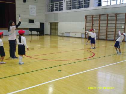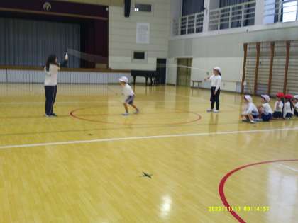 その後、長縄での跳び方を勉強しました。何回も練習するうちにほとんどの子が跳べるようになりました。皆嬉しそうでした。