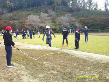 今月の中部っこあそびは大縄跳びです。どの班も6年生のリードで楽しく遊べました。