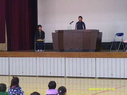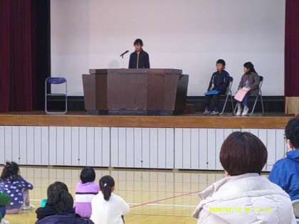 1年、3年、5年の代表が発表しました。自分が頑張ってきたこと、これから取り組んでいきたいことなど、しっかり発表が出来ました。行事の多い冬休みへのわくわくする気持ちもあふれていました。