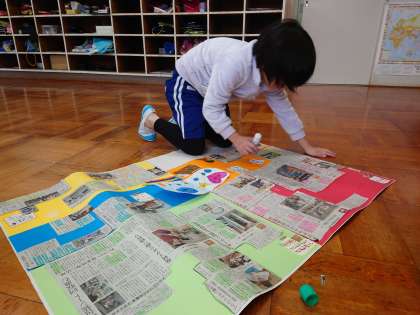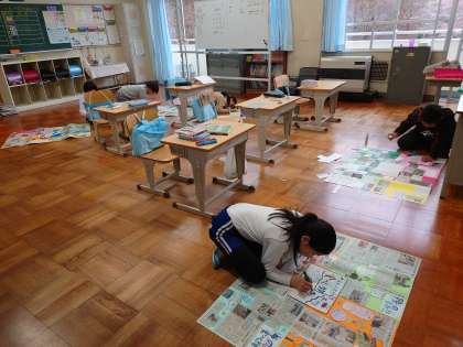 4年生は、4月から新聞を活用した学習(NJE)に取り組んできました。テーマを決め、記事を集め、レイアウトや見出しを工夫して、一つの作品を作りました。子ども達から「大変だったけど作った達成感があった」という声があがり、満足した顔を見せてくれました。作品は中日新聞社主催の「第30回新聞切り抜き作品コンクール」に出品します。