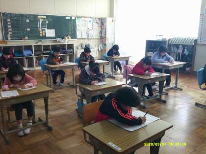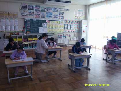 1,2年生は硬筆です。低学年の子にとって2時間集中して取り組むのは大変なことです。みんな頑張って取り組んでいました。