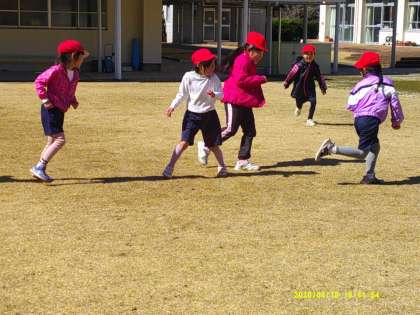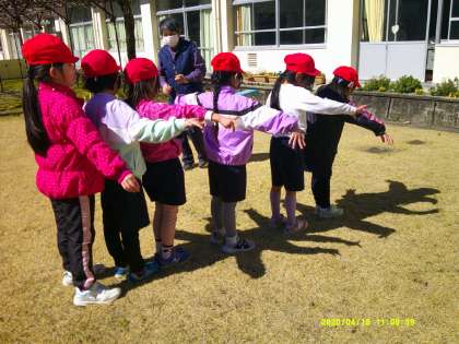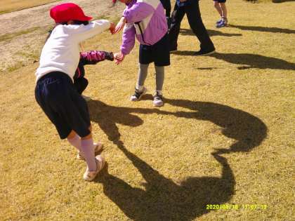 久しぶりの晴天です。1年の生活科で、なぜ影ができるのか?どちらに影ができるのか?など考えながらかげふみ遊びをしました。その後で、いろんな形の影をみんなで作って遊びました。