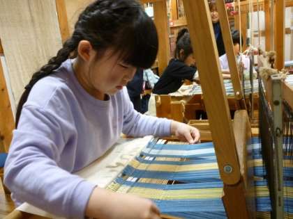 中馬のお雛様を見て、三州足助屋敷で機織り体験をしました。足助屋敷で出会った牛に、大盛り上がりでした。