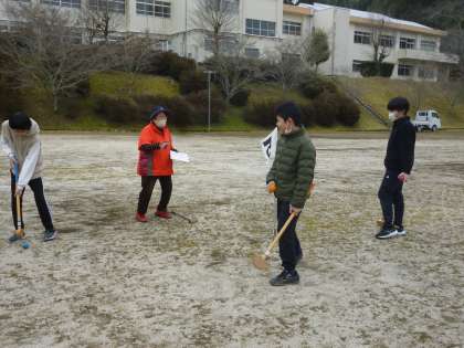 2月29日5時間目にグランドゴルフの交流を行いました。日曜日に学校開放で活動している福清グランドゴルフクラブの皆さんと5・6年生が今年度2回目の交流を行いました。前回は雨のため体育館でボッチャを行いました。今回初めてグランドゴルフをしてみて、メンバーさんの上手さにびっくりでした。コツを教えてもらい、楽しい時間を過ごしました。子ども達は、「もっとやりたい!」「またやりたい!」と、次回を楽しみにしています。