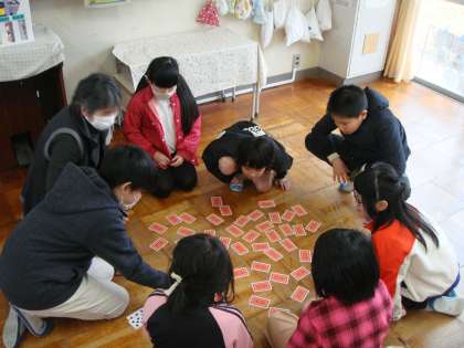 3月6日、5年生が初めて中心となって企画した中部っ子班遊びがありました。カードゲーム、折り紙、絵しりとりなど、皆で思いっきり楽しみました。今年度も終わりが近づいてきたので、いろいろなところで6年生から5年生へ引継ぎが行われています。
