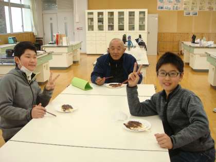 赤味噌ベースにゴマとクルミの入った特製だれの五平餅に舌鼓を打ちながら、話が弾みました。