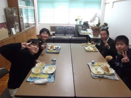 3月14日と15日に、6年生の子たちが2つのグループに分かれて、校長先生と校長室で給食を食べました。どんな話をしたのかな。思い出に残るひと時になったことでしょう。