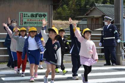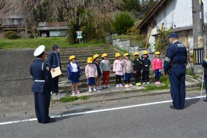 4月11日(木)永太郎の交差点で1年生の交通安全教室が開催されました。市場の駐在さん、交通指導員などの方々に指導してして頂き、信号のある交差点の渡り方を勉強しました。交通ルールを守って、事故に合わないように気を付けて欲しいですね。