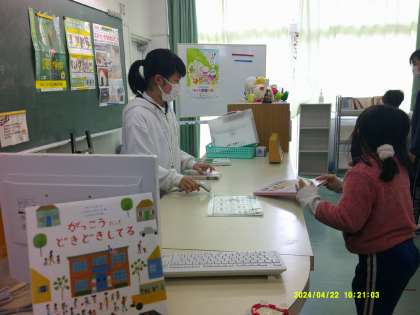 企画委員会、給食委員会、図書委員会、保健委員会などの活動が始まりました。年度はじめで4年生以上の委員の子たちはとても張り切っています。図書室では貸出作業をしてくれていました。