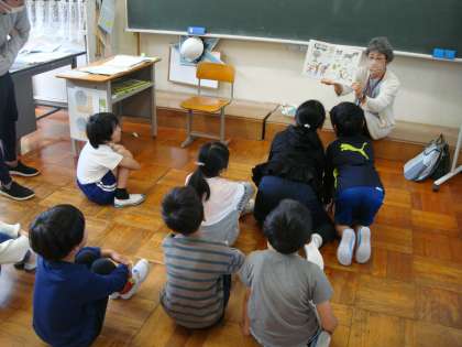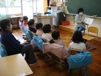 4月26日、今年度最初のひよっこくらぶの読み聞かせがありました。1〜3年の様子です。