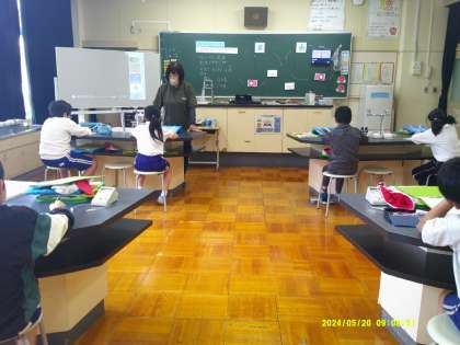 検流計を使って、電流の流れの学習です。乾電池の向きを変えると、電流の流れる方向はどうなるのかな?一人に1台の検流計を見ながら考えます。小規模校ならではの恵まれた環境で実験が進みます。