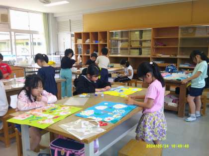 今日は完成させた絵のタイトルを考えたり、友達の絵を鑑賞したりしました。
