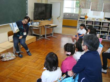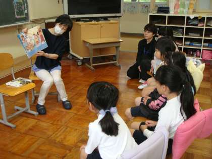 5月31日、ひよっこくらぶによる読み聞かせがありました。1〜3年の様子です。