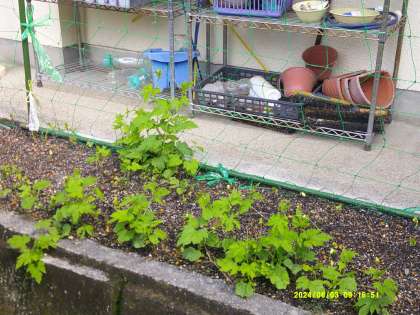 こぼれ種で出てきたゴーヤが生長しています。朝の涼しい時間に外遊びが出来るように今日から夏日課が変わりました。WBGTの測定器を使って、熱中症予防にも気を付けています。