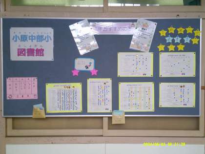 各学年の「すすめる本」に着々とシールが貼られています。1〜3年生は15冊、4〜6年生は10冊のすすめる本がありますが、低学年ではすでに全部読んでしまった子も大勢います。全部読むと「読書王」の称号が与えられます。