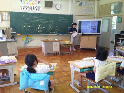 「たのしいしょくじ おいしいしょくじ 〜カトラリーを使い分けておいしく食事をしよう〜」という学習をしました。給食で何となく使っている、箸、スプーン、フォーク。どんな料理の時にどのカトラリーを使うと良いのかを考えました。授業後の今日の給食は中華料理でした。さて、何を使って食べたでしょうか。