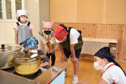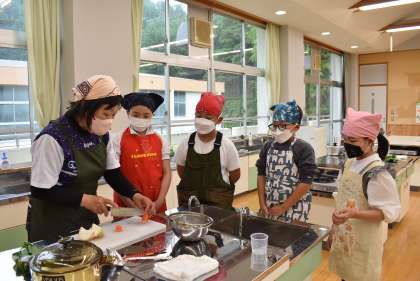 6月18日(火)にカレーライスを作りました。ご飯を鍋で炊くのは、水加減、火加減が難しく、上手く炊けた時はほっとしました。野菜を切るのも慎重に!おいしいカレーライスが出来ました。これなら、野外教室で自信を持って調理ができますね。