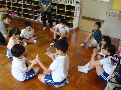 7月3日、中部っ子班遊びがありました。6つの班それぞれに、トランプゲーム、椅子とりゲーム、ジェスチャー、絵しりとりなどを楽しみました。