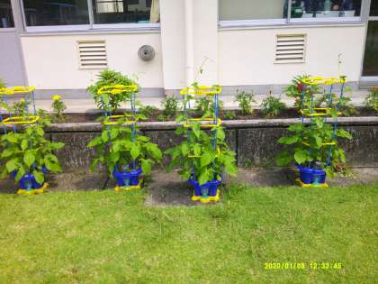 夏の野菜が畑に大きく広がってきました。水やりなどの世話も頑張っています。収穫が楽しみですね。