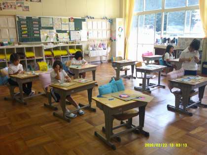 1年生は、おじいちゃんやおばあちゃんへのプレゼント作りをしています。16日の敬老の日に届けようと張り切っています。喜んでくださる顔が目に浮かぶようですね。