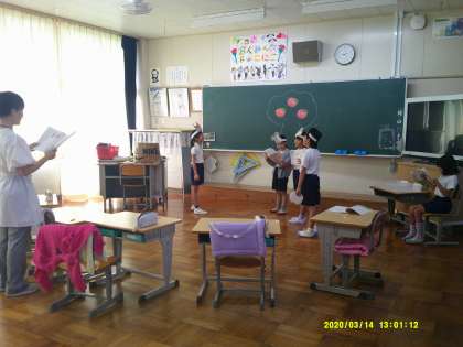 「ニャーゴ」という単元の学習です。今回も登場人物の気持ちを考えながら劇にして演じています。場面ごとにやってみて、意見を出し合い、進めていました。