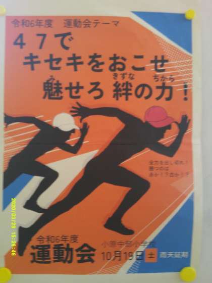 今年は「47でキセキをおこせ 魅せろ 絆の力!」のテーマで運動会を開催します。19日(土)開催です。是非お越し頂き、子ども達にご声援をお願いします。